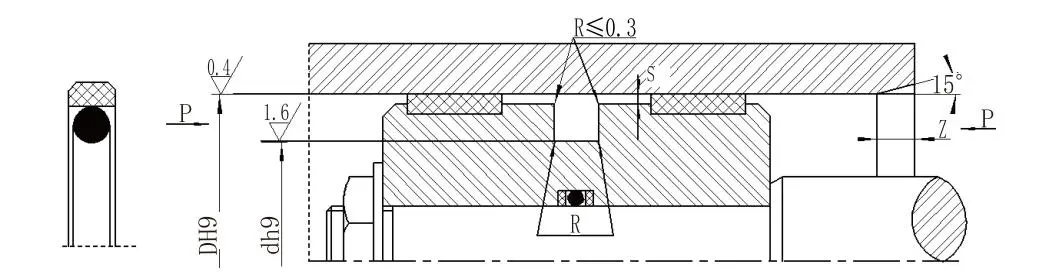 A vedação combinada quadrada (Glyd Ring Seal) para pistões (diâmetro interno) consiste em um anel de vedação retangular preenchido com PTFE e um O-ring. É adequado para vedação de pressão bidirecional em movimento hidráulico alternativo. O O-ring fornece força radial e compensa o desgaste do anel de vedação. Geralmente é usado em conjunto com um anel guia. Para diâmetros de cilindro inferiores a 30 mm, deve ser usado um projeto de ranhura dividida (aberta).
