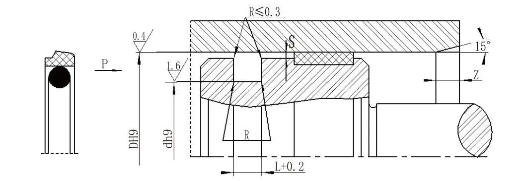 A vedação escalonada do pistão alternativo consiste em um anel de vedação escalonado preenchido com PTFE e um O-ring, adequado para vedação de pressão unidirecional em aplicações hidráulicas alternativas. O O-ring fornece força radial e compensa o desgaste do anel de vedação. Geralmente é usado em conjunto com um anel guia. Para diâmetros de cilindro inferiores a 30 mm, deve ser usado um projeto de ranhura dividida (aberta).
