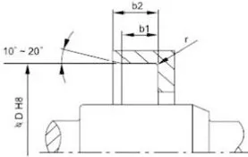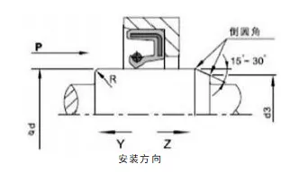 2. Projeto do eixo giratório e das ranhuras: A superfície do eixo deve ser lisa e sem rebarbas. Marcas de usinagem em espiral podem criar um efeito de bombeamento, causando vazamentos. Recomenda-se que a área de montagem do retentor de óleo seja retificada até uma rugosidade superficial de Ra0,1-0,5µm, tornando-se mais lisa com o aumento da velocidade. Para facilitar a instalação e desmontagem, o eixo e as ranhuras devem ser projetados com chanfros ou bordas arredondadas. Veja as Figuras 1 e 2.
