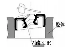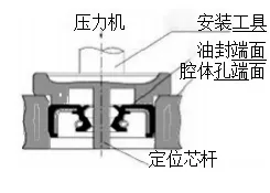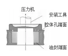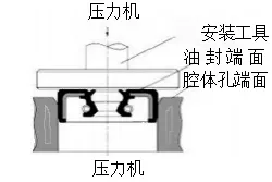 Este método só é aplicável quando a face final do retentor de óleo e a face final da cavidade estão niveladas. Quando o equipamento de prensagem opera rapidamente, o retentor deve estar posicionado corretamente; caso contrário, poderá ocorrer desalinhamento. |