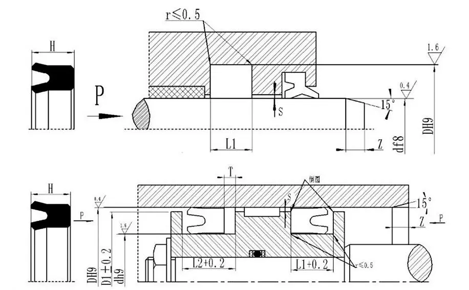 O UHS U-Seal é uma vedação simétrica para aplicações em furos e eixos. Possui seção transversal menor e pode ser instalado em ranhuras integrais. Um anel de retenção é necessário na raiz quando usado sob pressões de 16 a 32 MPa.