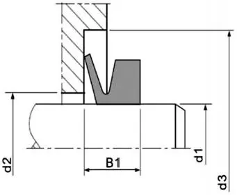 Diagrama esquemático de um selo d'água em forma de V